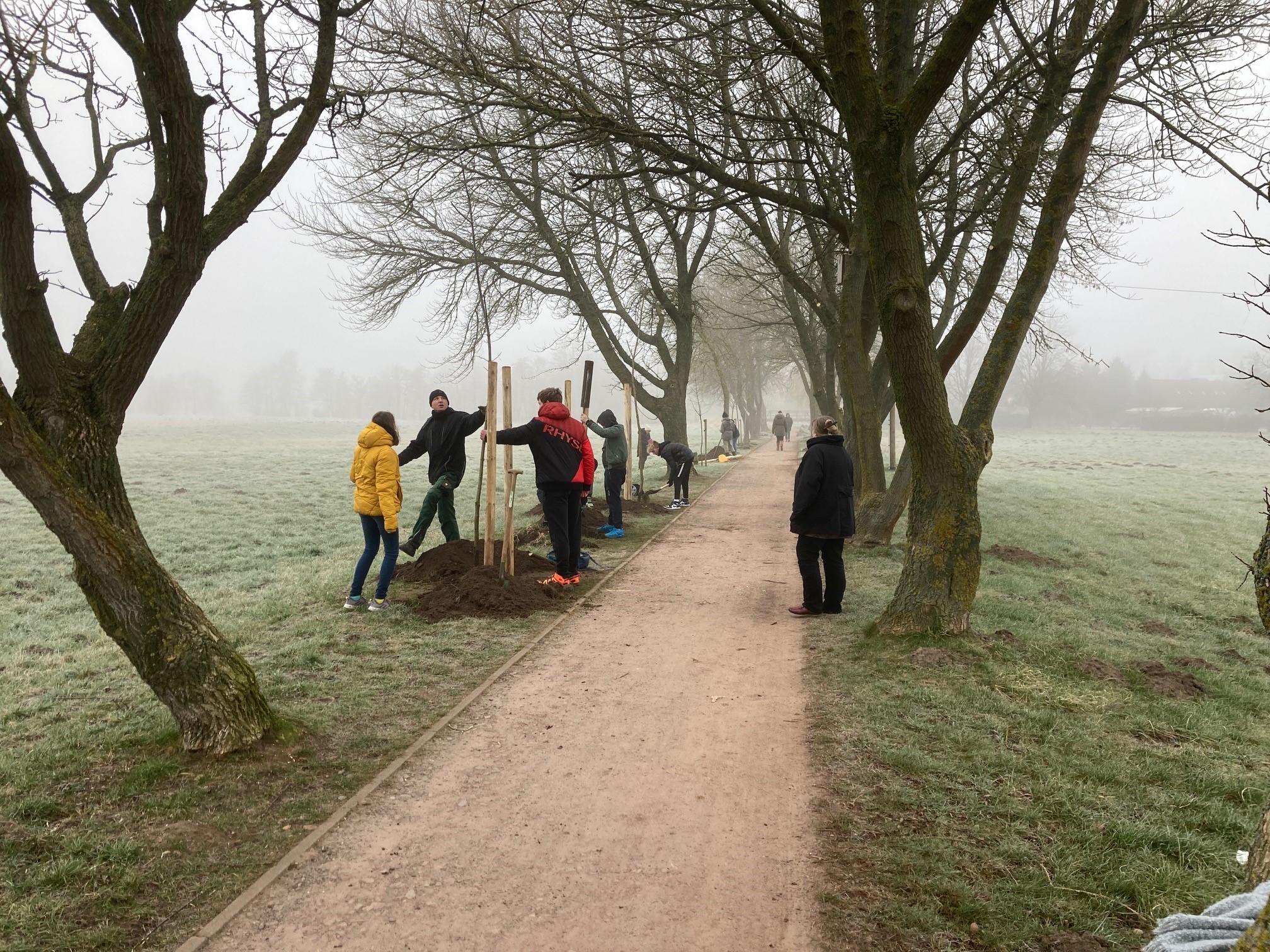 Am vergangenen Donnerstag, dem 3.3.2022 durfte ich als duale Studentin der Hansestadt Osterburg, zusammen mit der siebten Klasse der Sekundarschule „Karl Marx“ aus Osterburg, Bäume pflanzen. Um mich kurz vorzustellen: Mein Name ist Alissa Lach, ich bin 19 Jahre alt und studiere Öffentliche Verwaltung. Nach meinem ersten Semester an der Hochschule Harz in Halberstadt folgte die erste Praxisphase im Bauamt Osterburg. Dort wurde ich herzlich aufgenommen und sofort eingebunden. Dabei habe ich zusammen mit Herrn Karg viele Projekte umgesetzt. Unter anderem die Baumpflanzaktion am Schwiegerelternweg (in der Nähe vom Biesebad). Mit Hilfe der 7b, wurden 22 Bäume als Lückenschluss zur bestehenden Allee gepflanzt. Es handelt sich um Eschenahorne aus der eigenen städtischen Anzucht, die besonders unempfindlich gegenüber Klimaschwankungen sind. Zunächst gab es eine Einführung von den Gärtnern der Stadt, wie man einen Jungbaum in die Erde einsetzt. Danach bekam jeder einem Spaten und so konnte es losgehen.