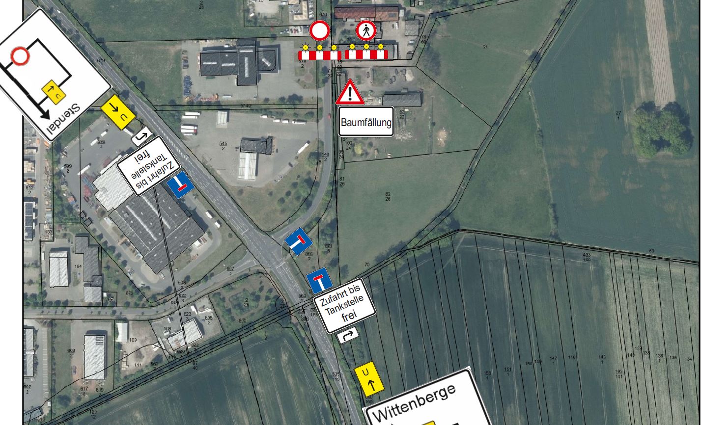 Die Stendaler Chaussee im Bereich Schilddorf - ab der Zufahrt Tankstelle bis zur Einfahrt Krebsweg - wird von Montag, den 19. Januar bis voraussichtlich Donnerstag, den 22. Januar 2026 jeweils zwischen 8.30 - 18 Uhr voll gesperrt sein. Grund sind 27 Baumfällungen im genannten Bereich.