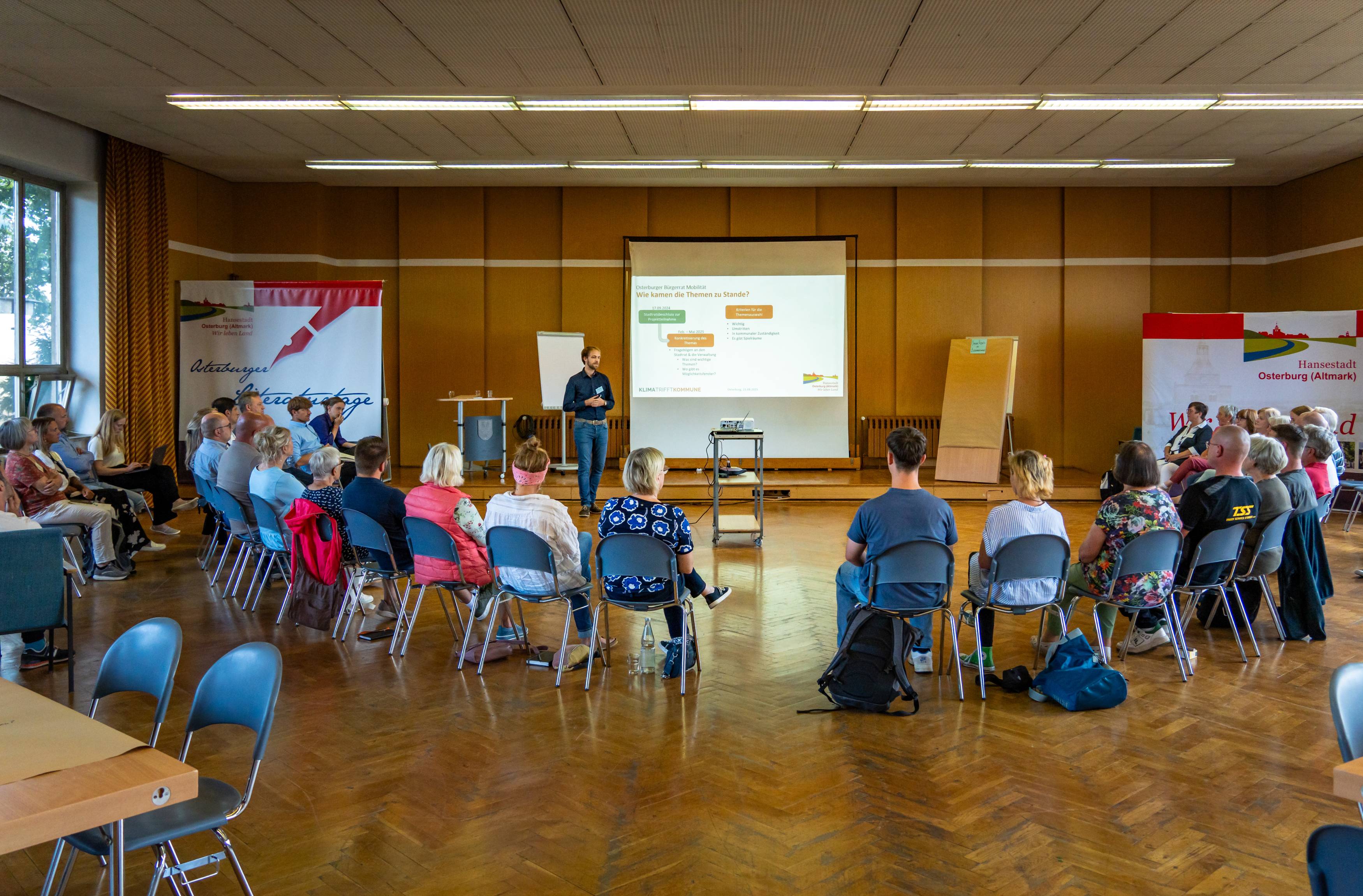 Startschuss für den zweiten Osterburger Bürgerrat: Am Donnerstag, den 21. August 2025 von 17 bis 20 Uhr trafen sich die per Los gewählten Teilnehmerinnen und Teilnehmer im Saal des Verwaltungsgebäudes an der Ernst-Thälmann-Straße zur ersten von insgesamt sechs Sitzungen. Bis Ende November wird sich die Gruppe mit dem Thema „Radverkehr und Mobilität“ befassen – unterstützt von unabhängigen Moderatorinnen und Moderatoren sowie Fachleuten, die Rückmeldung zum Thema geben können. >Alle Informationen zum Bürgerrat in Osterburg!