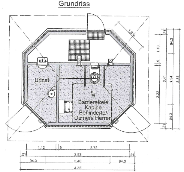 Von folgenden Kosten für eine öffentliche Toilette wird derzeit ausgegangen: