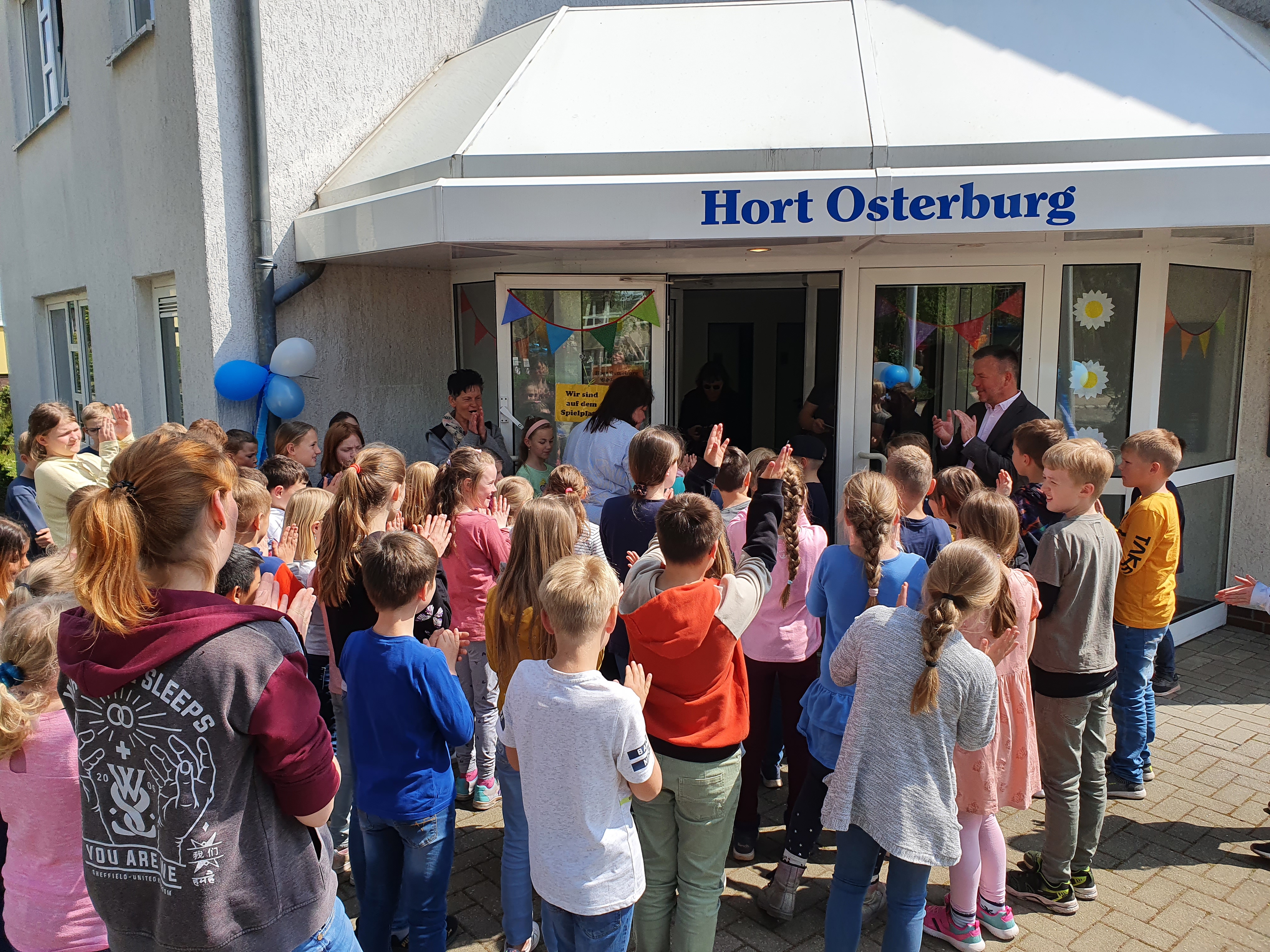 13:15 Uhr. Es klingelt. Die Schule ist aus. Doch am Montag, den 2. Mai 2022 ist für rund 60 Zweit-, Dritt- und Viertklässler der Grundschule "Am Hain" in Osterburg alles ein bisschen anders. Grund ist die Eröffnung der neuen Hort-Außenstelle gegenüber der Kita "Jenny Marx" an der Mühlenstraße. Ab dem neuen Schuljahr 2022/23 verbringen auf circa 150 Quadratmetern im Erdgeschoss des ehemaligen Arbeitsamtes bis zu 50 Mädchen und Jungen aus den dritten und vierten Klassen ihren Nachmittag. Um Hausaufgaben im luftig großen Gemeinschaftsbereich zu machen, klar. Doch das Objekt bietet mehr: die thematisch aufgeteilten Räume zum Kickern, Nähen, Bauen, Forschen, Spielen, Ruhen und Kreativsein machen es zu einem (H)Ort zum Wohlfühlen und Entfalten.