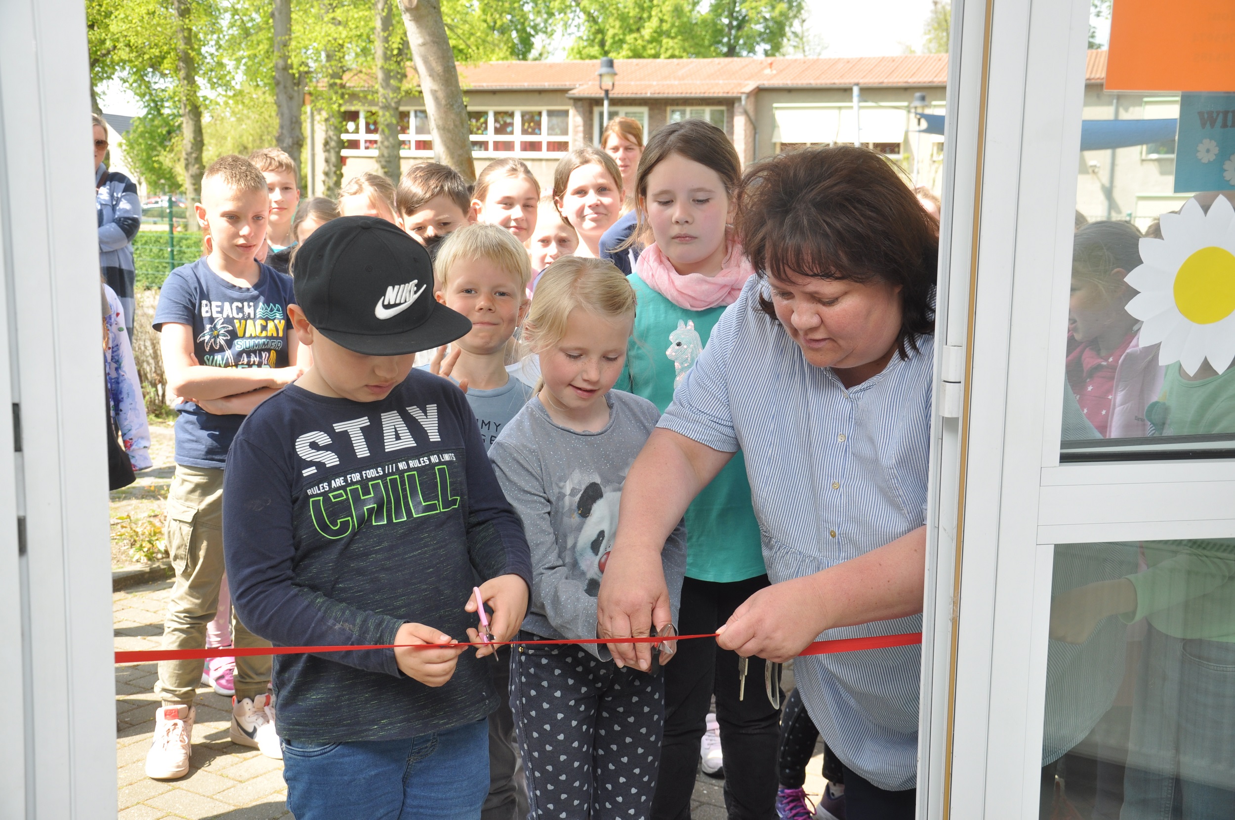 "Doch darum geht es unterm Strich", machte Bürgermeister Nico Schulz vor dem symbolischen Scherenschnitt deutlich. Nicht ohne auf einen noch fehlenden wichtigen Baustein im neuen Hort-Außenkonzept der Stadt hinzuweisen: den Spielplatz auf dem Gelände des ehemaligen Verkehrsgartens hinter der Kita. Bis Ende Mai 2022 sind die Restarbeiten dort erledigt. "Dann könnt ihr dort auch Fußball spielen und euch draußen austoben", was die Kinder mit einem herzhaften "Yeah" quittierten und die Bälle im Netz am liebsten gleich einem ausgiebigen Test unterzogen hätten. Nicht weniger enthusiastisch wurden stattdessen die neuen Horträume in Beschlag genommen.
