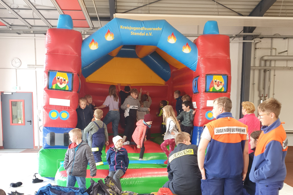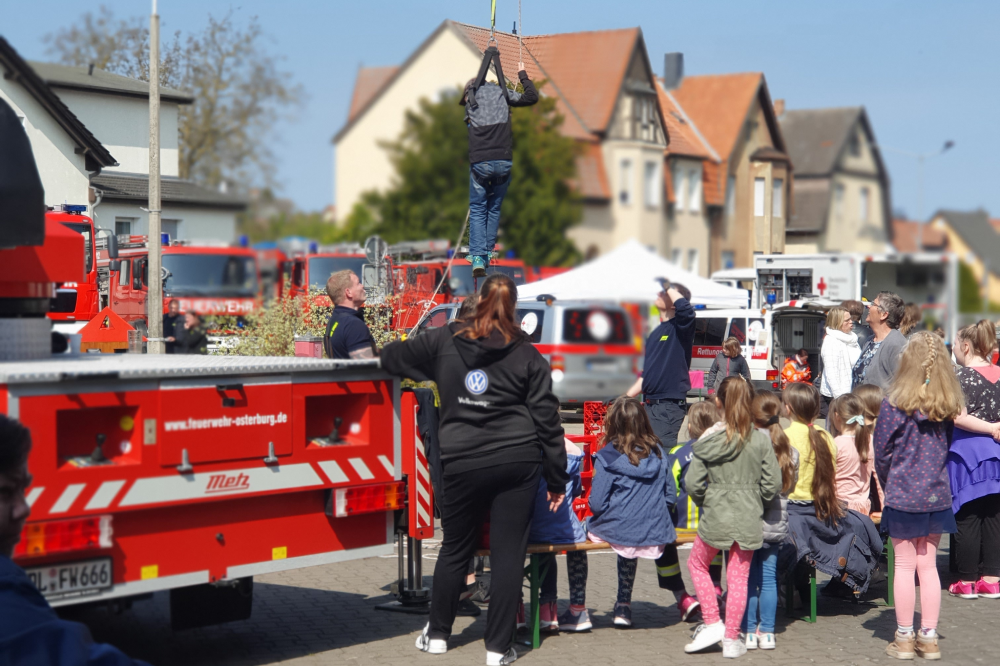 Eine gute Organisation im Vorfeld und Partner, die mitziehen – natürlich. Doch: "wir sind ein eingespieltes Team, das läuft bestens", freute sich Stadtwehrleiter Sven Engel über die rege Beteiligung der Mitmachenden, aber auch der Gäste. Aus allen Ecken der Einheitsgemeine strömten Kindergarten- und Schulklassen auf den Vorplatz der Feuerwehr an der Stendaler Straße. Klar, das große Angebot lockte an: die Hüpfburg der Kreisjugendfeuerwehr des Landkreises Stendal, die Rettungshundestaffel des DRK, die Polizei mit verschiedenen Aktionen. Kistenklettern, Brandhaus, Probeliegen im Rettungswagen, "der heiße Draht", Zielspiele mit dem Feuerwehrschlauch. Dazu kommt: "Alle sind hungrig nach solchen Aktionen. Coronabedingt mussten wir den traditionellen Tag der offenen Tür zwei Jahre ausfallen lassen", fügte Sven Engel an und bedankte sich bei allen Mitstreitern und Gästen. Und davon zählte Filip Mäder, Sachbearbeiter Brandschutz bei der Hansestadt Osterburg, von 08:00 bis 12:00 Uhr insgesamt 600. Besucherrekord.