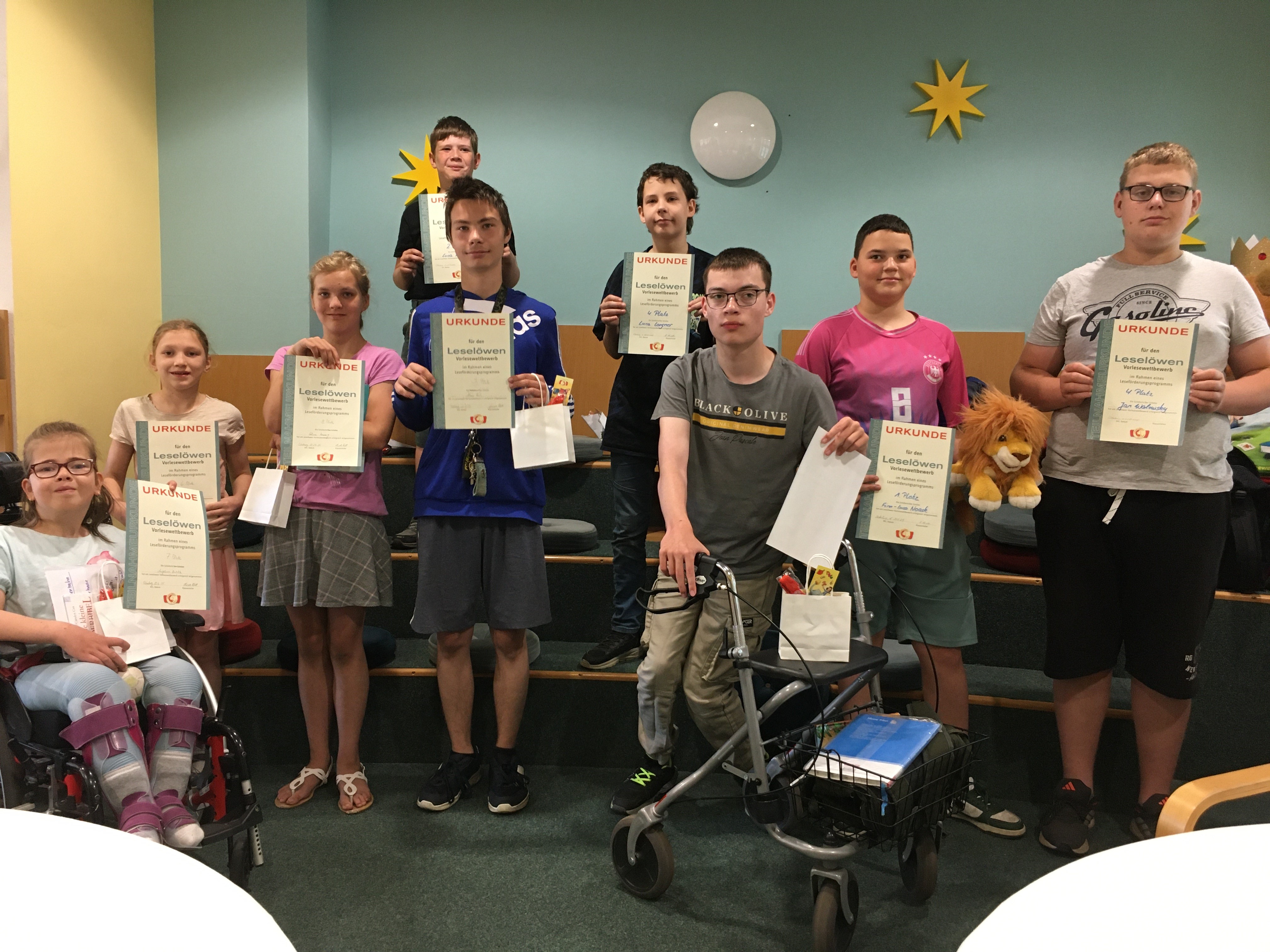 Zu ihrem jährlichen Vorlesewettbewerb kamen Schülerinnen und Schüler der Förderschule „Anne Frank“ und der GB-Schule Erxleben wieder in der Osterburger Stadt- und Kreisbibliothek zusammen. Aufgeregt, aber gut vorbereitet und konzentriert trugen sie sommerliche Gedichte vor und lasen Passagen aus selbst gewählten Büchern vor – darunter „Die Schule der magischen Tiere“, „Robin Hood“ oder „Gregs Tagebuch“. Letzteres wurde von Finn-Luca Noack präsentiert, und zwar so gut, dass er sich den Leselöwen-Titel sicherte. Der Sechstklässler aus der Anne-Frank-Schule überzeugte die Jury mit Textsicherheit, Betonung und Vortragstempo und punktete auch beim Gedichtvortrag sowie beim Lesen eines unbekannten Textes. Doch leicht fiel es der Jury nicht, ihre Entscheidung zu treffen, denn „jeder von euch hat eine tolle Leistung gezeigt und Mut bewiesen, am Wettbewerb teilzunehmen“, lobten die beiden Lehrerinnen und Jury-Mitglieder Katja Hirsch und Nicole Flödel. Sie bedankten sich zudem bei ihren Schützlingen für die gute Atmosphäre während des Wettbewerbs und die Aufmerksamkeit, die sie einander schenkten.