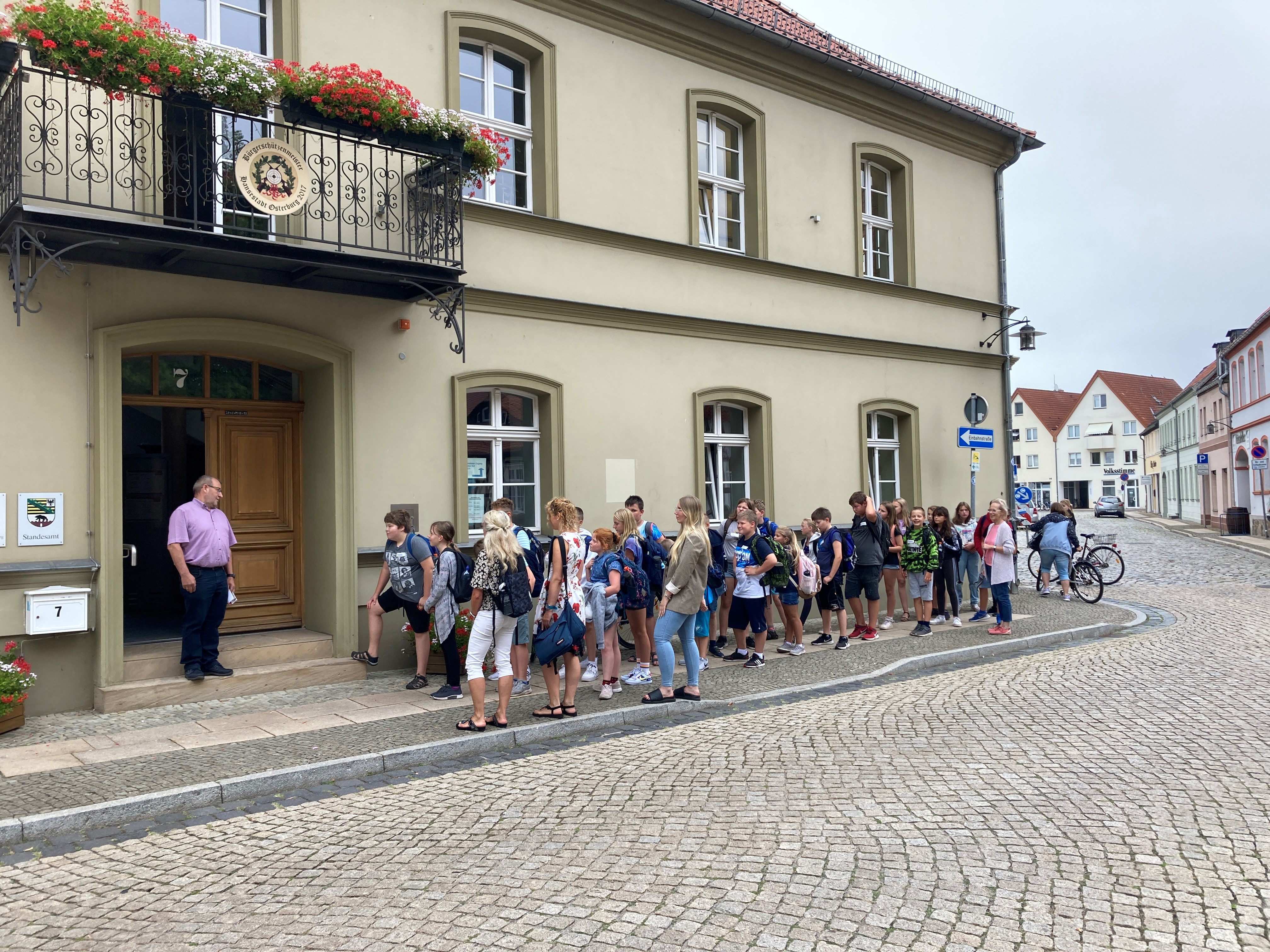 In zwei Gruppen für je eine Stunde nahmen die Mädchen und Jungen den stellvertretenden Bürgermeister und Amtsleiter für Finanzen und Ordnungsangelegenheiten im Standesamt "ins Kreuzverhör", unterzogen den Bürgermeisterstuhl einem ausgiebigen "Chill-Test", lauschten aufmerksam zur Geschichte der Hansestadt und des Rathauses. Aufgepasst! Unter der Oberfläche ist ein ehemaliges Gefängnis versteckt, "ich zeig’s euch natürlich" ging eine spannende wie besondere Unterrichtsstunde in der Schul-Schnupper-Woche vorbei.