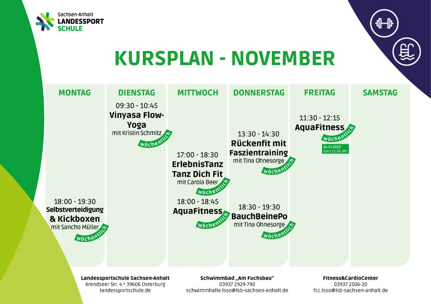 Den Kursplan der Landessportschule Sachsen-Anhalt in Osterburg können Sie unter diesem Text aufrufen und speichern.