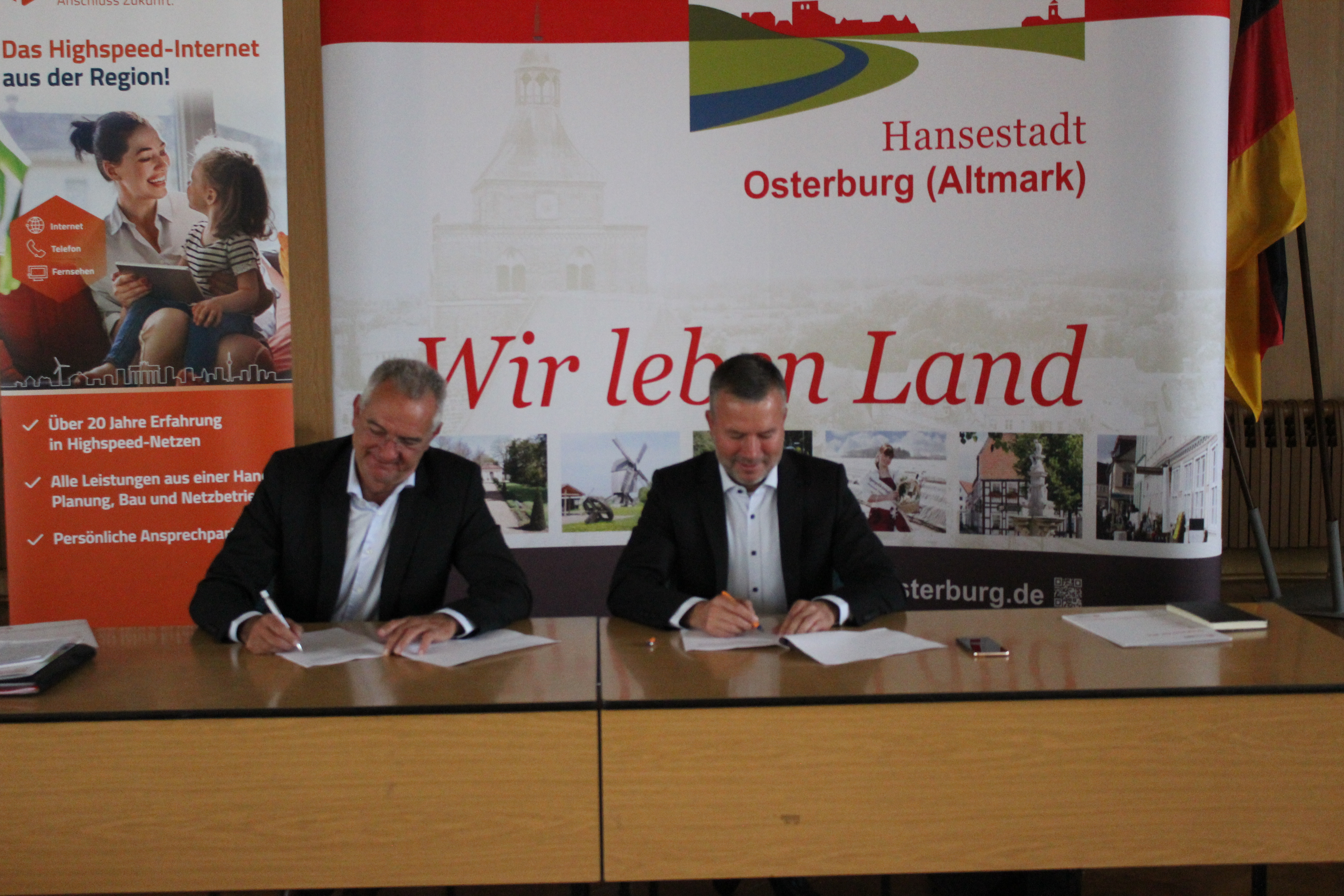 Mit der Firma DNS:NET ist es möglich nicht nur geförderte Haushalte mit Glasfaser zu versorgen, sondern alle Haushalte können damit exakt zu den gleichen Bedingungen angeschlossen werden. Bürgermeister Nico Schulz ist darüber hocherfreut: „Mit dem heutigen Tag können wir die gesamte Einheitsgemeinde beim Glasfaserausbau berücksichtigen und haben dafür einen exzellenten Partner gewinnen können.“ Am 10. September wurde in der Stadtverwaltung unter Anwesenheit der Verwaltung, Projekt- und Geschäftsleitung der DNS:NET die Kooperationsvereinbarung unterzeichnet.