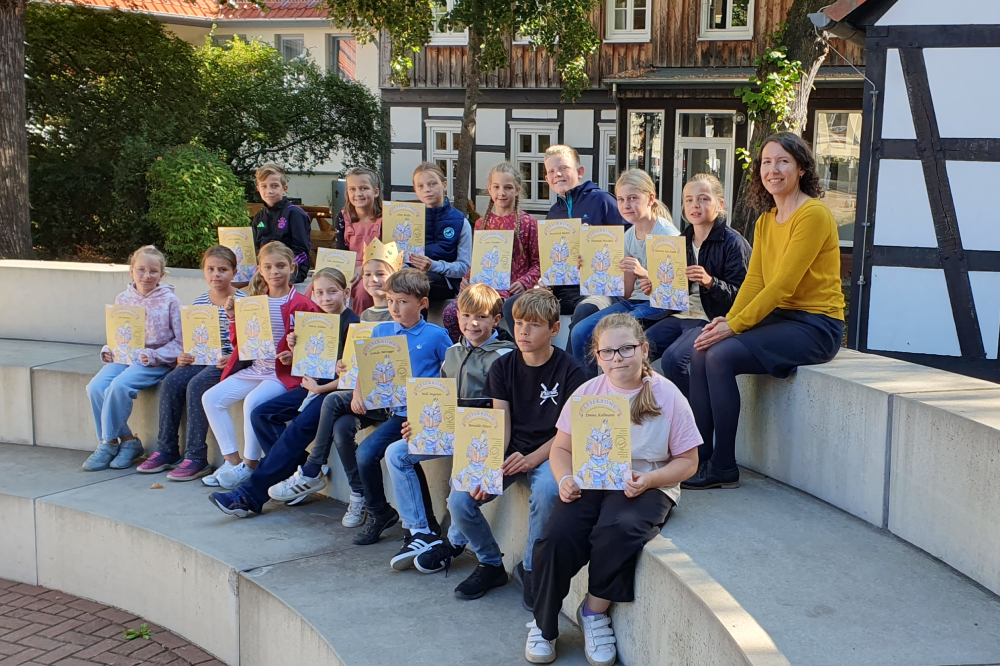 Freitagfrüh 8 Uhr am 15. September 2023 in der Stadt- und Kreisbibliothek Osterburg-Stendal – ohrenbetäubende Stille erfüllt die zweite Etage des Gebäudes am Großen Markt. Durchbrochen von flüsternden Worten in Mamas, Papas, Omas oder Opas Ohr. Seufzer sind zu hören. Feuchte Hände werden an Hosenbeinen gerieben. Kurzum: Spannung liegt in der Luft. Ausgeströmt von 16 anwesenden Viertklässler:innen aus dem Landkreis Stendal. Sie alle sind mit demselben Ziel angereist: Den Regionalausscheid der vom Friedrich-Bödecker-Kreis initiierten Lesekrone 2023 aufsetzen. Dafür müssen die Mädchen und Jungen eine dreiköpfige Jury mit der Art des Vorlesens eines eigenen und eines unbekannten Textes überzeugen. „Das ist sehr mutig“, unterstreicht Jurymitglied Anette Rieger bei der Begrüßung. „Denn vor fremdem Publikum ein Buch vorstellen, das trauen sich viele Erwachsene nicht mal“. Es gehe nicht Perfektion, sondern allein ums Mitmachen. „Egal wie es ausgeht, ihr wart schon die Besten an euren Grundschulen und am Ende seid ihr alle Gewinner“, stellt die Bibliotheksleiterin die weiteren Jurymitglieder Ulrike Herms vom Fahrbücherei-Team und Jana Henning als Presse- und Projektmitarbeiterin der Stadt Osterburg vor. Zweieinhalb Stunden später ist die alles andere als leichtfallende Entscheidung gefallen.
