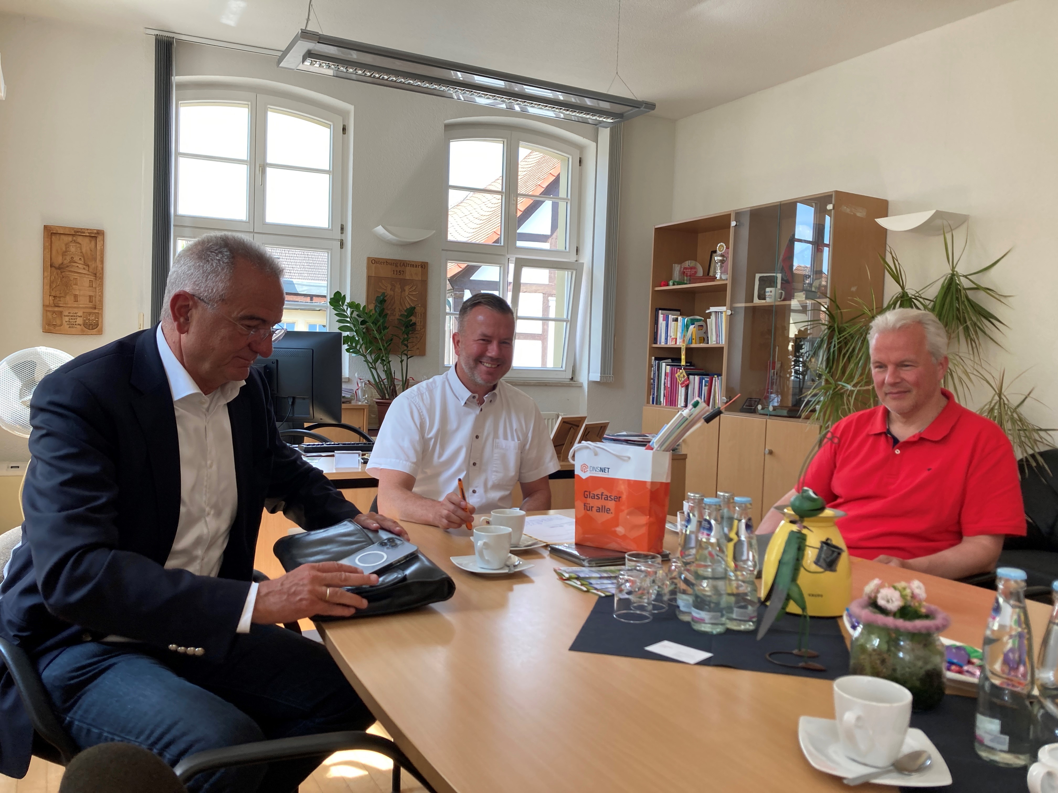 DNS:NET ist seit Herbst 2021 in der Vorvermarktungsphase, um auch nicht geförderte Anschlüsse mit Übertragungsgeschwindigkeiten ab 30 Mbit/s auf Glasfaser umzurüsten, ohne dass die Haushalte dafür zahlen müssen. Das erfordere eine gewisse Wirtschaftlichkeit und Planungssicherheit, erklärte kürzlich DNS:NET-Unternehmensrepräsentant Hardy Heine im Osterburger Rathaus. Sprich: 50 Prozent der potenziellen Anschlussnehmer müssen sich im Vorfeld der Großinvestition für Glasfaser entscheiden; einen Vorvertrag abschließen. „In einigen Dörfern liegen wir inzwischen bei 40 Prozent und kanpp darüber.“ Es sei nun der Endspurt angesagt. Ist die Entscheidung gefallen, könne es schnell, "bis Ende des Jahres in der Kernstadt und ausgesuchten Ortsteilen, wo die Quote passt" losgehen. Und dann Schritt für Schritt in weiteren Orten. Aus zwei Jahrzehnten Erfahrung im regionalen Glasfaserausbau wisse er: "Wenn Fakten geschaffen sind und tatsächlich gebaut wird, motiviert dies weitere Menschen, den Anschluss ans schnelle Internet nicht zu verpassen."