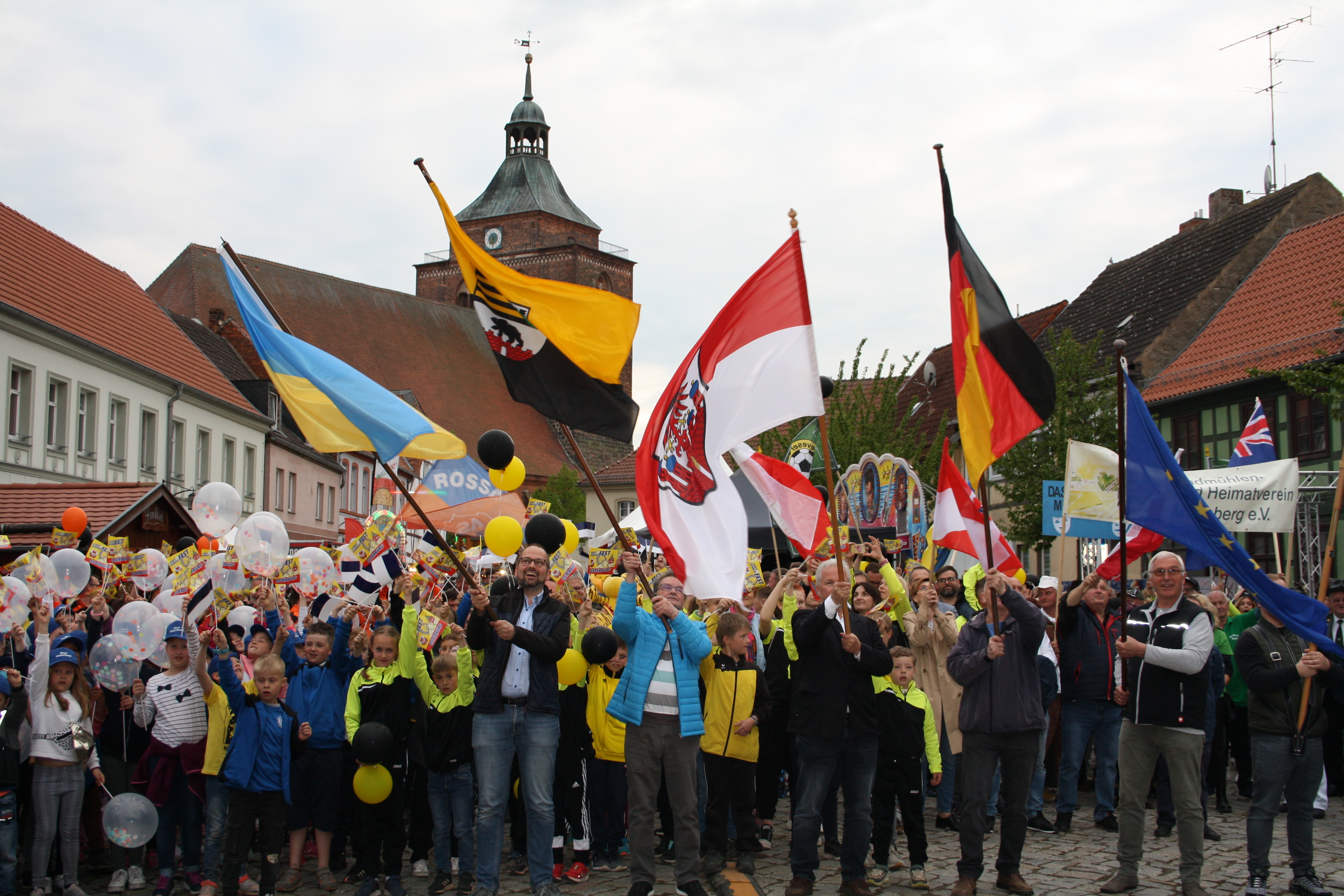 Außerdem den Mitmachern und Engagierten im Vorder- und im Hintergrund, der Händlerinitiative "Treffpunkt Breite Straße" um Andrea Lux, den zahlreichen Vereinen beim Umzug "Osterburg zeigt Flagge", den Teilnehmenden beim "Politischen Forum", der Spargelkönigin, den Ortschaftsräten um Osterburgs Bürgermeister Klaus-Peter Gose, Pfarrer Gordon Sethge für seinen spontanen Einsatz beim Gottesdienst im Autoscooter, Turntable-Aktrobat DJ Micha, Event-Manager Guido Lenzner, den Medienpartnern Radio Brocken und Volksstimme, überhaupt allen musikalischen Aktiven, Spargelhof Hoffheinz aus Genthin für die Unterstützung bei der Ukraine-Hilfe-Aktion, den Mitarbeitenden der Stadtverwaltung, Ausrichter Lothar Welte und Christian Lübeck und nicht zuletzt den vielen Besuchern.