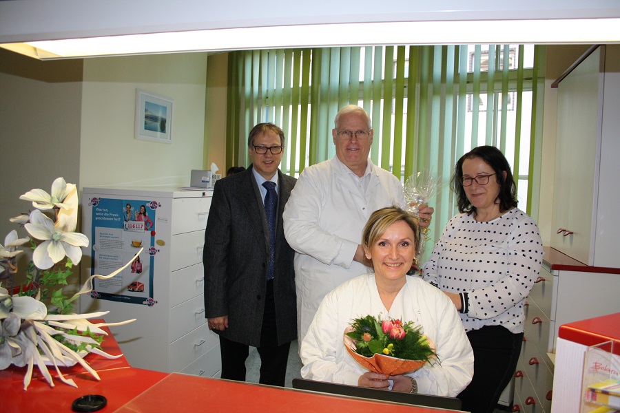 Allen voran Dr. med. Andreas Trusen (Foto: links). "Dass wir hier heute stehen ist in erster Linie der Beharrlichkeit von Frau Mewes und Osterburgs Bürgermeister Nico Schulz zu verdanken", unterstrich der Geschäftsführer der Johanniter-MVZ Altmark. Die "Jeden-Dienstag-Sprechstunde" sei ein wichtiger Zwischenschritt für den grundsätzlichen Erhalt des Praxisstandortes – erklärtes Ziel für ihn, MVZ-Koordinatorin Ina Hanuse (Foto: rechts) und die Osterburger Stadtverwaltung allerdings, "energisch weitersuchen und den Patientinnen schnellst möglich wieder eine tägliche gynäkologische Versorgung bieten zu können."